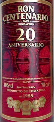 Ron Centenario Fundación 20 Aniverario 80 Proof - 70 cl e Product of Costa Rica -------------------------------- 2025 - San José, Costa Rica